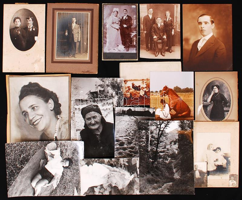 Beschreibung: 1900-1980 99 darabos fotótétel; régi, többsége keményhátú fénykép, kfl méretekben, sokféle témával.
