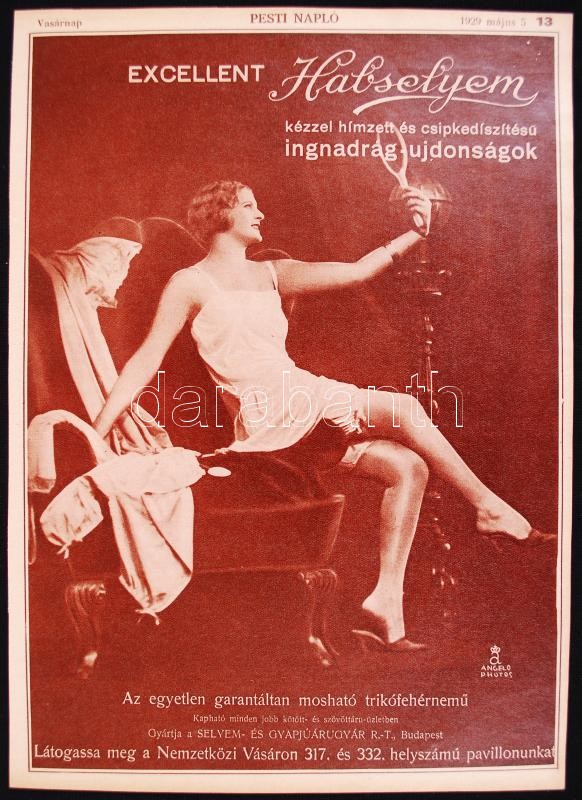 1929 Angelo (1894-1974) fehérnemű reklámfotója kézzel színezett fotóla... https://www.darabanth.com/de/189-Fernauktion/189.0/Andere-Sammelgebiete/Foto~4000017/1929-Angelo-1894-1974-fehernemu-reklamfotoja-kezzel-szinezett-fotolapon-valamint-a-Pesti-N~II707125