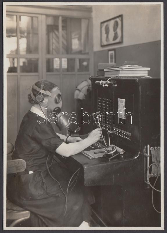 Call lady in gas mask,... https://www.darabanth.com/de/189-Fernauktion/189.0/Andere-Sammelgebiete/Foto~4000017/1938-Telefonkozpontos-kisasszony-gazalarcban--3Cbr3ECall-lady-in-gas-mask-18x13cm~II706748
