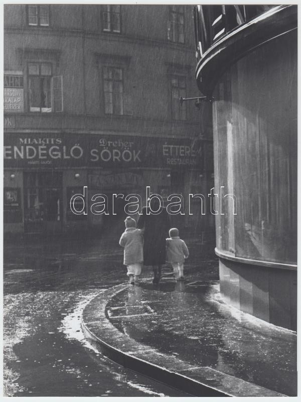 Beschreibung: 1940 Járai Rudolf (1913-1995): Tavaszi zápor. Vintage fotó, hátoldalán feliratozott, aláírt, 24x18cm