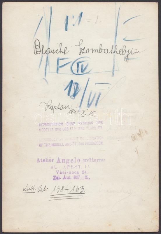 1941 Angelo (1894-1974): Műtermi felvétele Szombathelyi Blanka (1918-1... https://www.darabanth.com/de/189-Fernauktion/189.0/Andere-Sammelgebiete/Foto~4000017/1941-Angelo-1894-1974-Mutermi-felvetele-Szombathelyi-Blanka-1918-1999-szinesznorol-Vinta~II704886