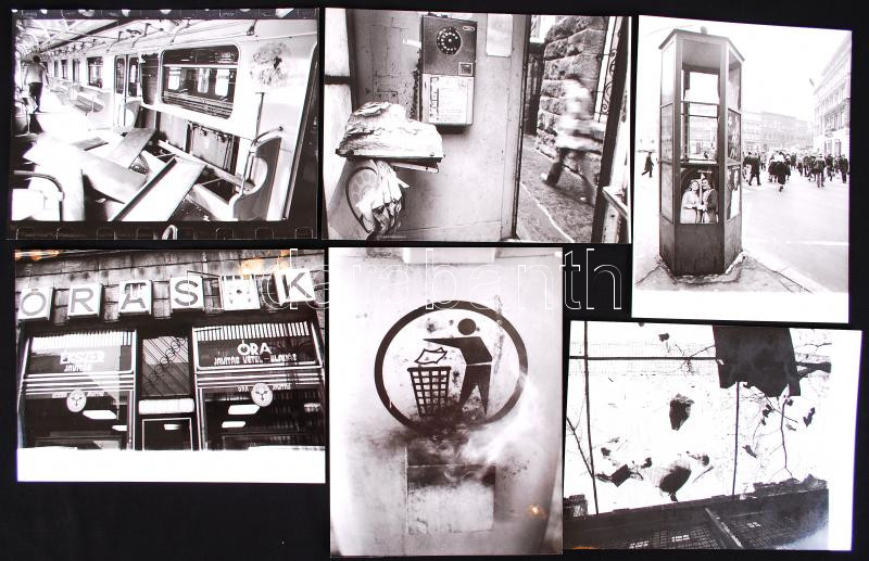Beschreibung: 1970-80 Vandálok pusztításainak nyomai Budapesten, 6db 18x24 cm-es fotón.