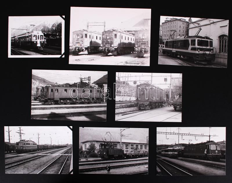Beschreibung: 8db, hátoldalán feliratozott fotó régi svájci villanymozdonyokról, klf méretben /