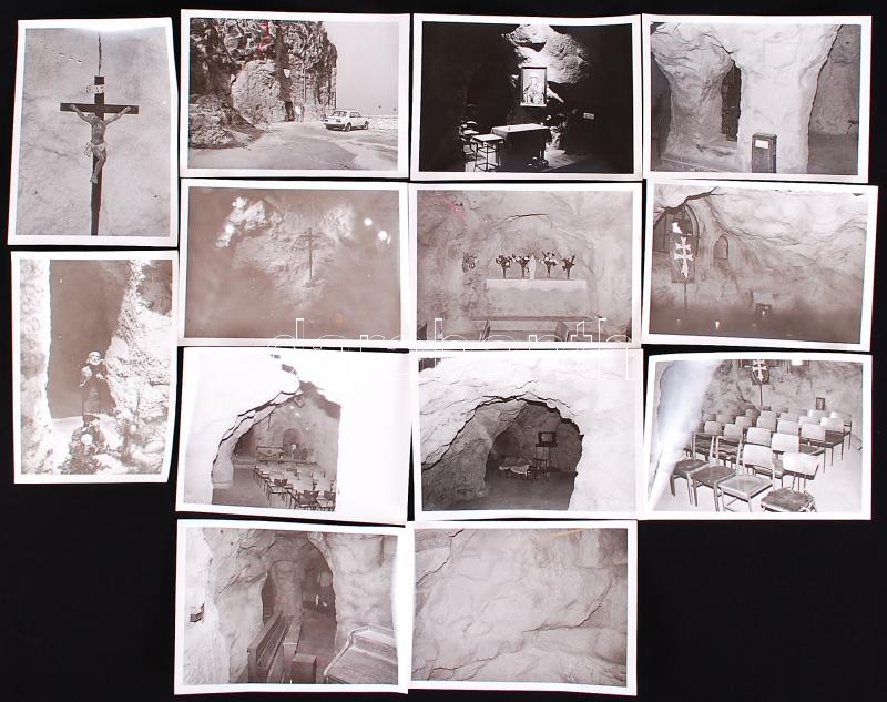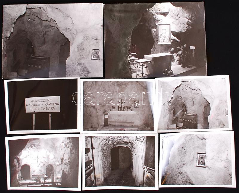 Cca 1970 21 db kép Vető János (1953) festő és fotóművész archívumából, a Gellérthegyen lezárt Szikla-kápolna megnyitásáról. Első helyszíni fotók. 18x24 cm és 13x18 cm