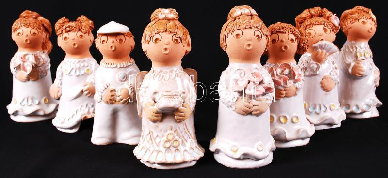 Beschreibung: Antalfiné Szente Katalin (keramikus): Figurális nagy tétel. Mázas kerámia, jelzett, hibátlan, összesen 8 db, 15(8×) cm. / Ceramic figured 15 (8×) cm.
