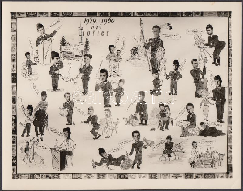 1959-1960 Csehszlovák katonai iskola humoros tablóképe, 18×24 https://www.darabanth.com/de/189-Fernauktion/189.0/Andere-Sammelgebiete/Militaria~4000023/1959-1960-Csehszlovak-katonai-iskola-humoros-tablokepe-18C39724~II703709