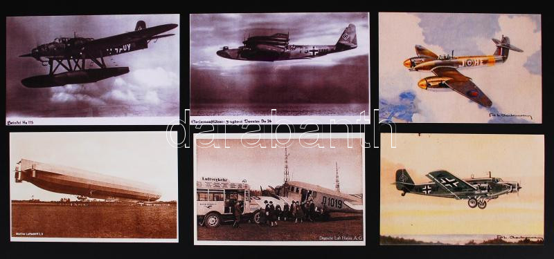 Beschreibung: 6db, I. és II. világháborús bombázót, illetve katonai repülőt ábrázoló fotómásolat, levlap méretben