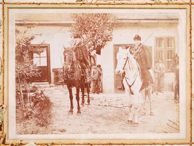 Cca 1910 Lovas csendőrök egy tanyaudvaron. Díszes kartonra kasírozva, ... https://www.darabanth.com/de/189-Fernauktion/189.0/Andere-Sammelgebiete/Militaria~4000023/Cca-1910-Lovas-csendorok-egy-tanyaudvaron-Diszes-kartonra-kasirozva-29x38-cm~II706803