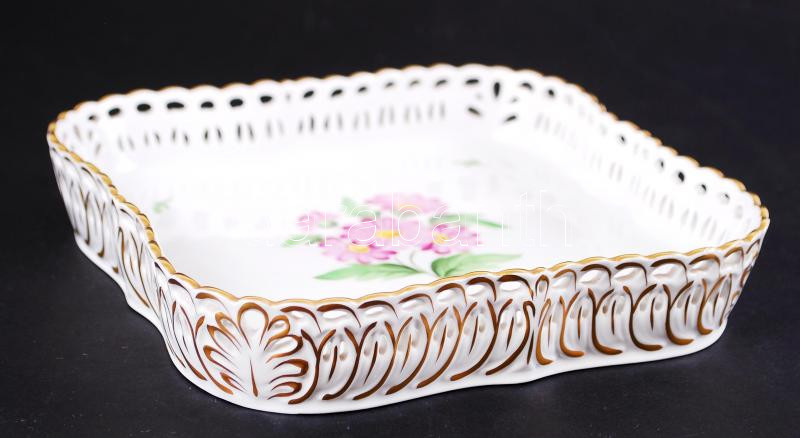Beschreibung: Herendi rózsás áttört tál, kézzel festett, jelzett, hibátlan, 18×17 cm