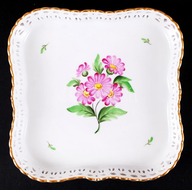 Herendi rózsás áttört tál, kézzel festett, jelzett, hibátlan, 18×17 cm https://www.darabanth.com/de/189-Fernauktion/189.0/Andere-Sammelgebiete/Porzellan~2000043/Herendi-rozsas-attort-tal-kezzel-festett-jelzett-hibatlan-18C39717-cm~II704895