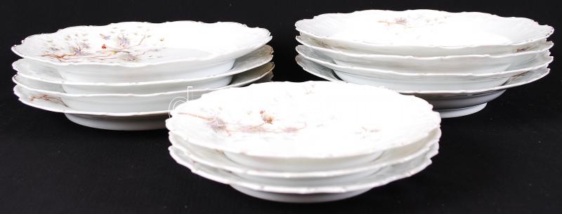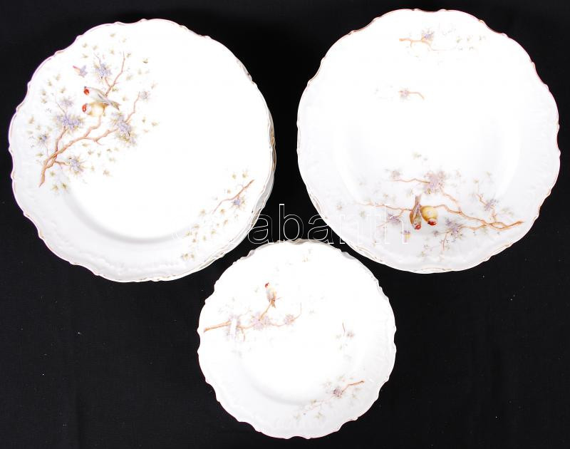 Beschreibung: Hiányos madaras készlet, jelzés nélkül, matricás, néhány tányéron hajszálrepedések