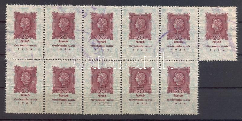 Beschreibung: 1934 20P törvénykezési illeték bélyeg kilences tömb