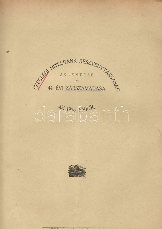 Beschreibung: A Czeglédi Hitelbank Rt. zárszámadása az 1935. évről; Sebők Béla nyomdája