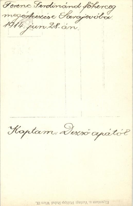 Sarajevo, 28 June 1914, Franz Ferdinand 1 Stunde vor dem Attentat / an... https://www.darabanth.com/de/19-Gross-Auktion/19.1/Ansichtskarten-Ausland/Bosnien-Herzegowina~6568/Sarajevo-28-June-1914-Franz-Ferdinand-1-Stunde-vor-dem-Attentat-an-hour-before-the-assassination~II902101