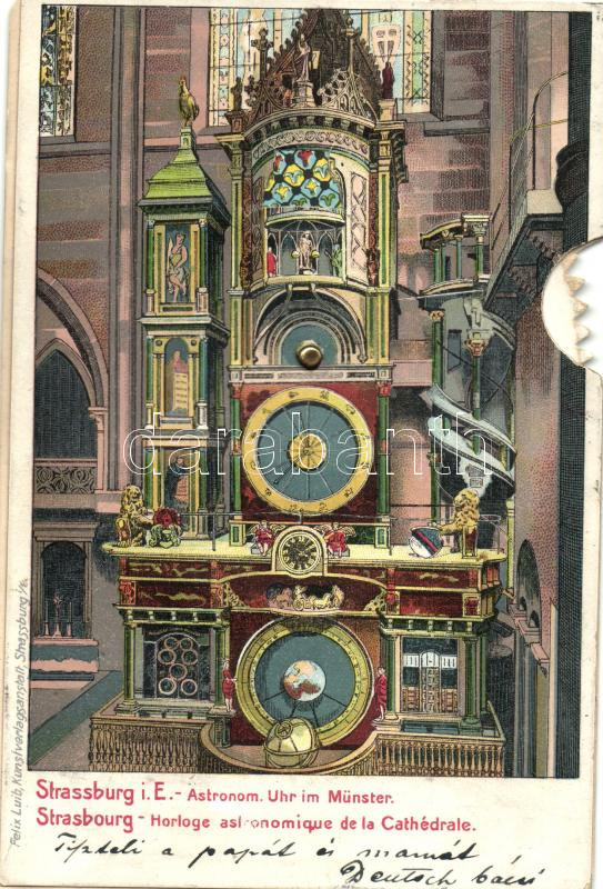 Strasbourg, Astronomical Clock; mechanical litho postcard https://www.darabanth.com/de/19-Gross-Auktion/19.1/Ansichtskarten-Ausland/Frankreich~6586/Strasbourg-Astronomical-Clock-mechanical-litho-postcard~II922333
