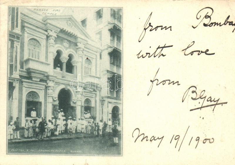 Bombay, Parsee Fire Tempel; Clifton & Co. photo (12 × 8.5 cm) https://www.darabanth.com/de/19-Gross-Auktion/19.1/Ansichtskarten-Ausland/India~6593/Bombay-Parsee-Fire-Tempel-Clifton-Co-photo-12-C397-85-cm~II942220