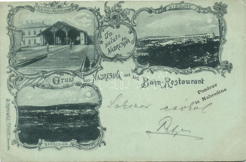 1899 Nabrezina, Nabresina; Bahn-Restaurant, Viadukt / railroad restaur... https://www.darabanth.com/de/19-Gross-Auktion/19.1/Ansichtskarten-Ausland/Italien~6625/1899-Nabrezina-Nabresina-Bahn-Restaurant-Viadukt-railroad-restaurant-viaduct-floral~II917528