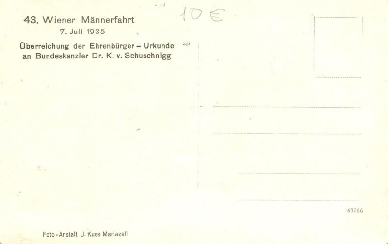 1935 Vienna, Wien; Wiener Männerfahrt, Überreichung der Ehrenbürger, U... https://www.darabanth.com/de/19-Gross-Auktion/19.1/Ansichtskarten-Ausland/Osterreich~6557/1935-Vienna-Wien-Wiener-Mannerfahrt-Uberreichung-der-Ehrenburger-Urkunde-am-Bundeskanzler-Dr~II922903