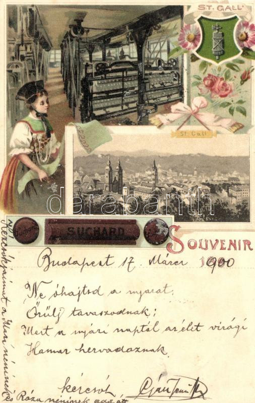 St. Gallen, Textilfabrik / textile manufacture; Suchard advertisement ... https://www.darabanth.com/de/19-Gross-Auktion/19.1/Ansichtskarten-Ausland/Schweiz~6632/St-Gallen-Textilfabrik-textile-manufacture-Suchard-advertisement-litho~II928911