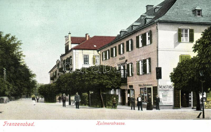 Frantiskovy Lazne, Franzensbad; Kulmerstrasse, Weinstube / street, pub https://www.darabanth.com/de/19-Gross-Auktion/19.1/Ansichtskarten-Ausland/Tschechische-Republik~6575/Frantiskovy-Lazne-Franzensbad-Kulmerstrasse-Weinstube-street-pub~II930546