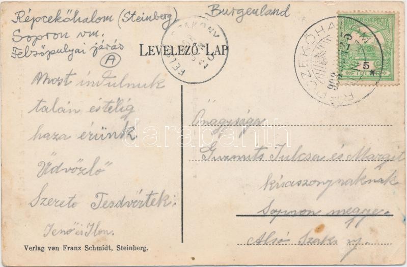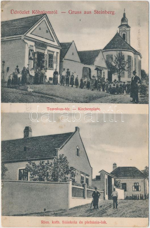 Répcekőhalom, Kőhalom, Steinberg; Templom tér, üzlet, Római katolikus fiúiskola és plébánia lak, Franz Schmidt kiadása / church square, Roman catholic boy school, parish (EK)