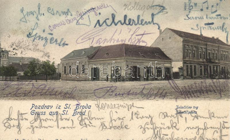 Bród, Slavonski Brod; Jelacicev trg / Jelacic square, shops https://www.darabanth.com/de/19-Gross-Auktion/19.1/Ansichtskarten-Ungarn/Kroatien~6547/Brod-Slavonski-Brod-Jelacicev-trg-Jelacic-square-shops~II931996