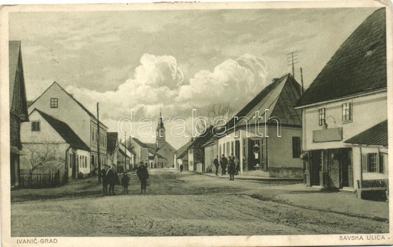Ivanic-Grad, Ivanicsvár; Savska ulica / Sava street, shops https://www.darabanth.com/de/19-Gross-Auktion/19.1/Ansichtskarten-Ungarn/Kroatien~6547/Ivanic-Grad-Ivanicsvar-Savska-ulica-Sava-street-shops~II914186