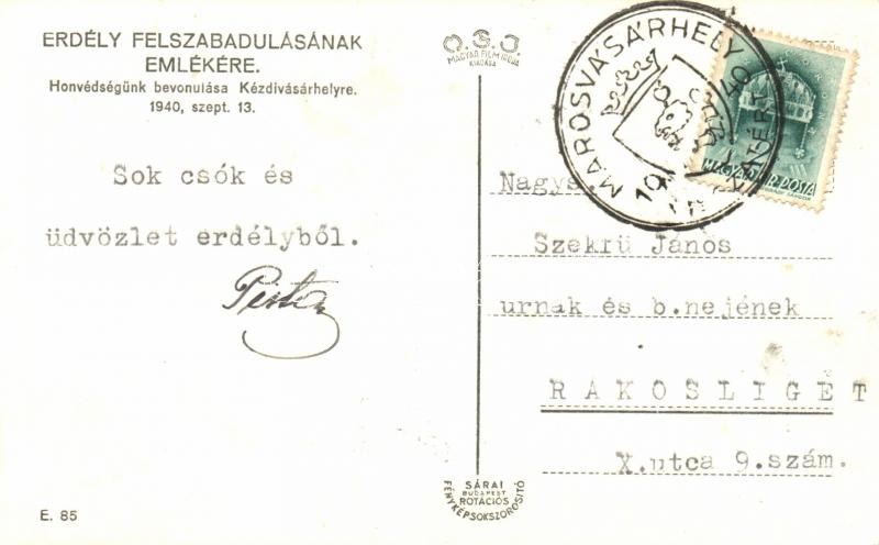 Beschreibung: Kézdivásárhely, Bevonulás / entry of the Hungarian troops, So. Stpl