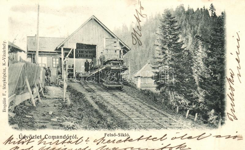 Komandó, Felső-Sikló; Bogdán E. fényképész / sawmill, funicular https://www.darabanth.com/de/19-Gross-Auktion/19.1/Ansichtskarten-Ungarn/Siebenburgen~6544/Komando-Felso-Siklo-Bogdan-E-fenykepesz-sawmill-funicular~II932021