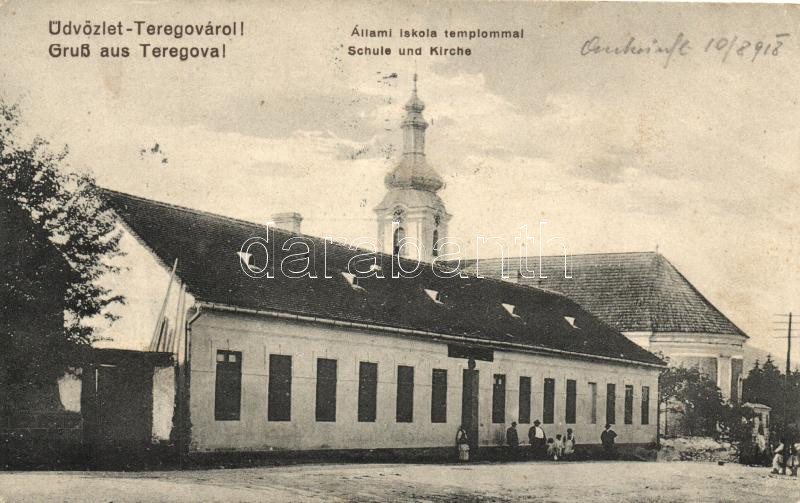 Teregova, Állami iskola, templom / school, church https://www.darabanth.com/de/19-Gross-Auktion/19.1/Ansichtskarten-Ungarn/Siebenburgen~6544/Teregova-Allami-iskola-templom-school-church~II924923