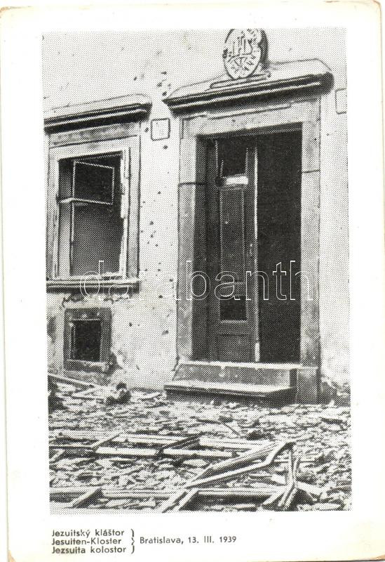 1939 III. 13. Pozsony, Bratislava; háború dúlta jezsuita kolostor / wa... https://www.darabanth.com/de/19-Gross-Auktion/19.1/Ansichtskarten-Ungarn/Slowakei~6545/1939-III-13-Pozsony-Bratislava-haboru-dulta-jezsuita-kolostor-war-damaged-monastery~II933963