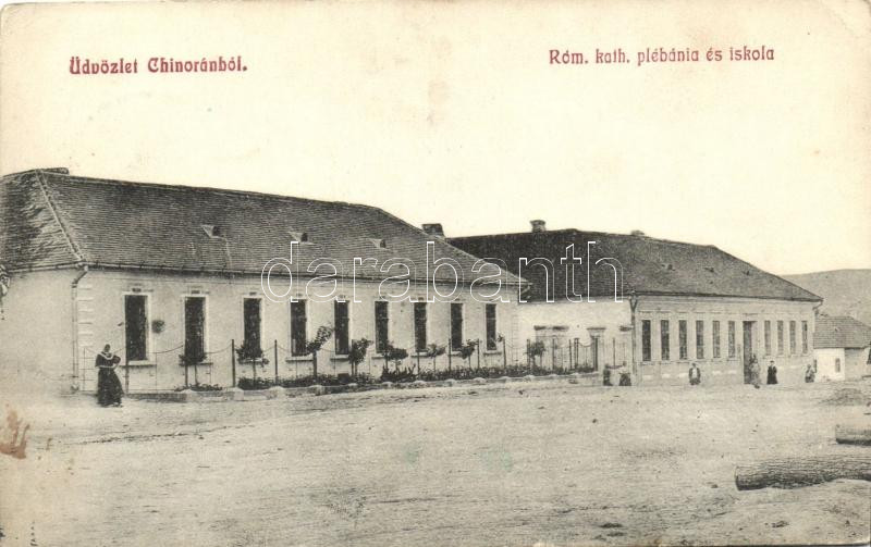 Beschreibung: Chinorán, Kinorány Chynorany (Nyitrazsámbokrét); Katolikus plébánia és iskola / Catholic parsonage and shool(EK)