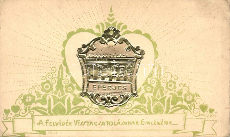 Beschreibung: Eperjes, Felvidéki Egyetemi és Főiskolai Hallgatók Egyesülete; irredenta Emb. s: Gát (EB)