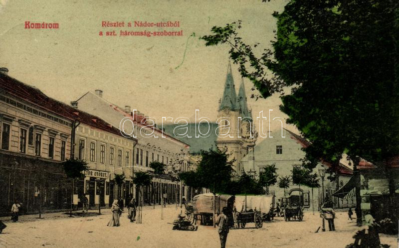 Komárom, Nádor utca, Szentháromság, Fektor György kereskedése / street... https://www.darabanth.com/de/19-Gross-Auktion/19.1/Ansichtskarten-Ungarn/Slowakei~6545/Komarom-Nador-utca-Szentharomsag-Fektor-Gyorgy-kereskedese-street-with-trinity-and-shop~II929782