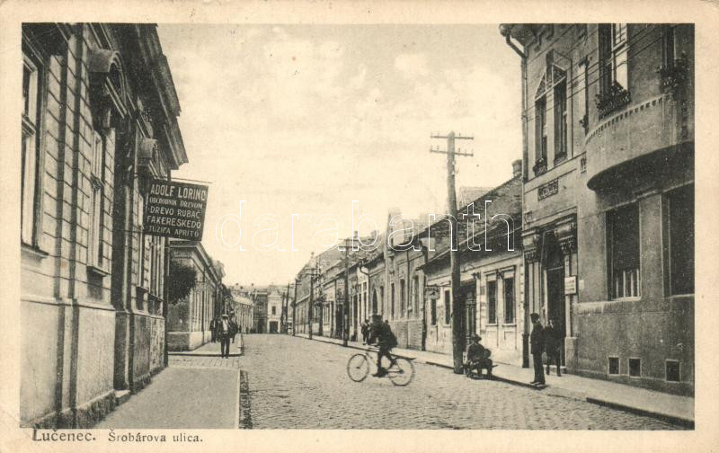 Losonc, Lucenec; Srobárova ulica / utcakép Adolf Lőrinc fakereskedő üz... https://www.darabanth.com/de/19-Gross-Auktion/19.1/Ansichtskarten-Ungarn/Slowakei~6545/Losonc-Lucenec-Srobarova-ulica-utcakep-Adolf-Lorinc-fakereskedo-uzletevel-street-shop-~II933940