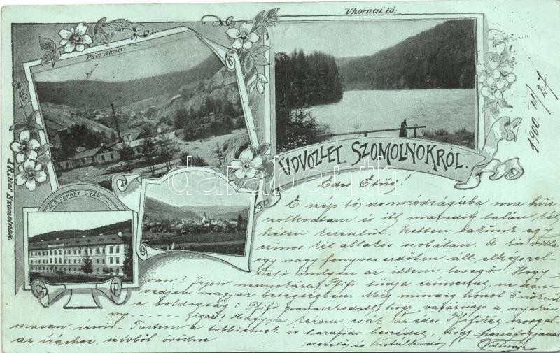 Szomolnok, Dohánygyár, Pécs-akna, Uhornai-tó / tobacco factory, mine; ... https://www.darabanth.com/de/19-Gross-Auktion/19.1/Ansichtskarten-Ungarn/Slowakei~6545/Szomolnok-Dohanygyar-Pecs-akna-Uhornai-to-tobacco-factory-mine-floral-kiadja-J-Ritter~II916998