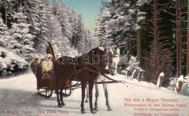 Beschreibung: Tátra, Téli élet; Klotild út Tátraszéplak mellett / winter sports, sleigh carriage