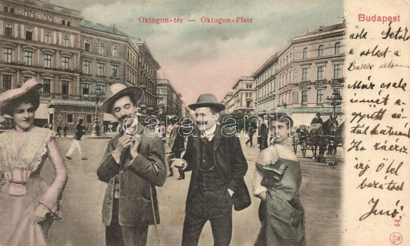 Budapest VI. Oktogon tér, kollázs https://www.darabanth.com/de/19-Gross-Auktion/19.1/Ansichtskarten-Ungarn/Ungarn~6543/Budapest-VI-Oktogon-ter-kollazs~II915255