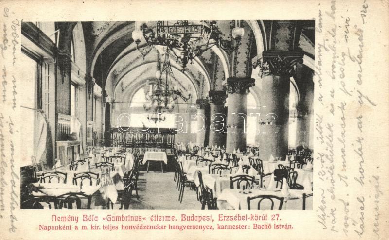Budapest VII. Erzsébet körút 27.; Nemény Béla Gambrinus Étterme (Rb) https://www.darabanth.com/de/19-Gross-Auktion/19.1/Ansichtskarten-Ungarn/Ungarn~6543/Budapest-VII-Erzsebet-korut-27-Nemeny-Bela-Gambrinus-Etterme-Rb~II915271