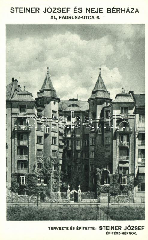 Budapest XI. Fadrusz utca 6. Steiner József és neje bérháza https://www.darabanth.com/de/19-Gross-Auktion/19.1/Ansichtskarten-Ungarn/Ungarn~6543/Budapest-XI-Fadrusz-utca-6-Steiner-Jozsef-es-neje-berhaza~II931573