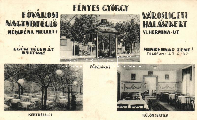 Budapest XIV. Hermina út, Fényes György fővárosi nagyvendéglője https://www.darabanth.com/de/19-Gross-Auktion/19.1/Ansichtskarten-Ungarn/Ungarn~6543/Budapest-XIV-Hermina-ut-Fenyes-Gyorgy-fovarosi-nagyvendegloje~II937510