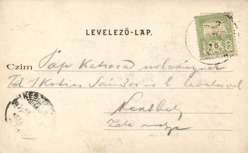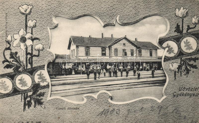 Beschreibung: Gyékényes, vasútállomás, Art Nouveau floral; kiadja Weisz Jakab
