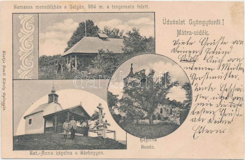 Gyöngyös, Samassa menedékház, Szent Anna kápolna, Sárhegy, Bene kápoln... https://www.darabanth.com/de/19-Gross-Auktion/19.1/Ansichtskarten-Ungarn/Ungarn~6543/Gyongyos-Samassa-menedekhaz-Szent-Anna-kapolna-Sarhegy-Bene-kapolna-Bendl-Karoly-kiada~II896500