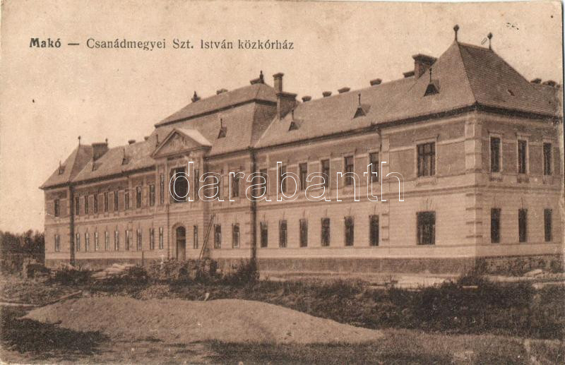 Makó, Csanád megyei Szent István közkórház (fl) https://www.darabanth.com/de/19-Gross-Auktion/19.1/Ansichtskarten-Ungarn/Ungarn~6543/Mako-Csanad-megyei-Szent-Istvan-kozkorhaz-fl~II921391