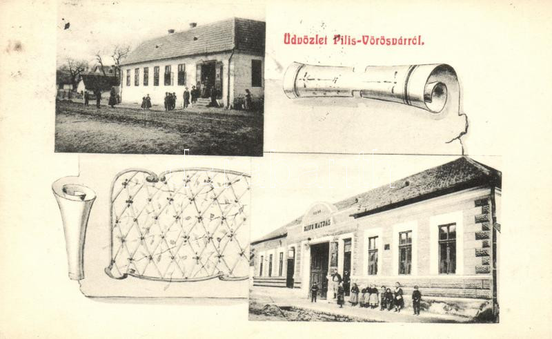 Pilisvörösvár, Blind Mátyás kocsmája https://www.darabanth.com/de/19-Gross-Auktion/19.1/Ansichtskarten-Ungarn/Ungarn~6543/Pilisvorosvar-Blind-Matyas-kocsmaja~II931821
