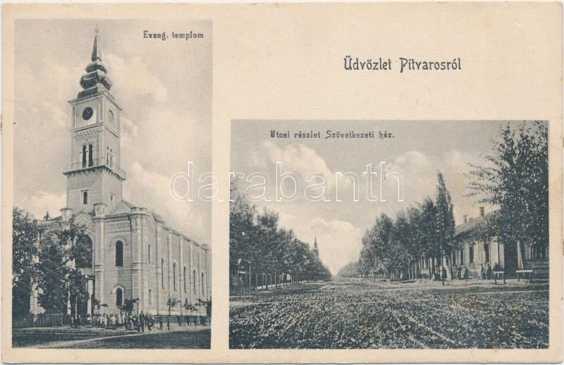 Pitvaros, Evangélikus templom, Szövetkezeti ház (ragasztónyom / gluema... https://www.darabanth.com/de/19-Gross-Auktion/19.1/Ansichtskarten-Ungarn/Ungarn~6543/Pitvaros-Evangelikus-templom-Szovetkezeti-haz-ragasztonyom-gluemark~II896460