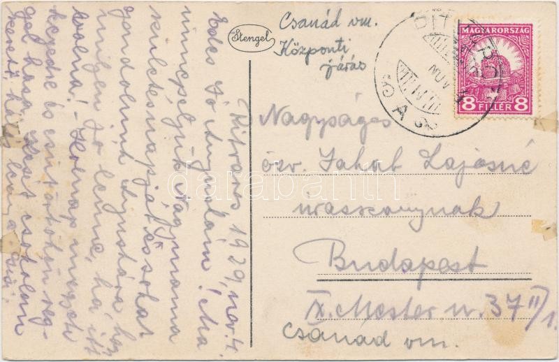 Beschreibung: Pitvaros, Evangélikus templom, Szövetkezeti ház (ragasztónyom / gluemark)