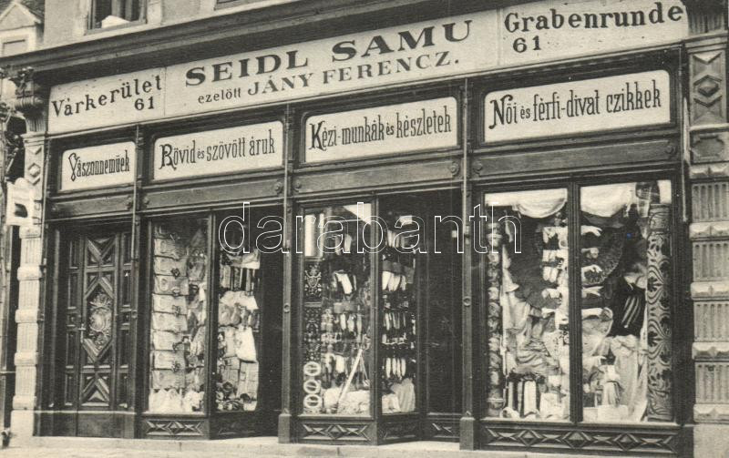 Sopron, Seidl Samu divatáruháza; Várkerület 61 / Grabenrunde https://www.darabanth.com/de/19-Gross-Auktion/19.1/Ansichtskarten-Ungarn/Ungarn~6543/Sopron-Seidl-Samu-divataruhaza-Varkerulet-61-Grabenrunde~II931973