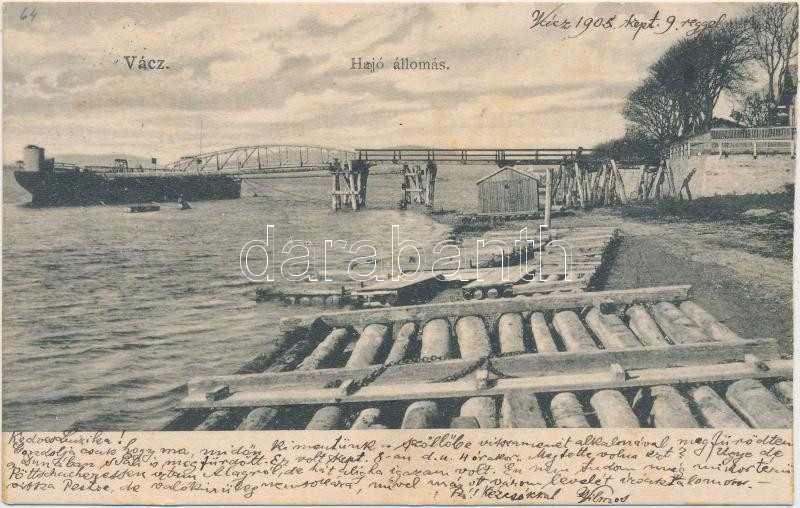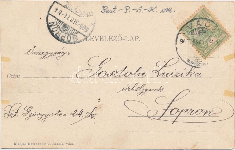 Beschreibung: Vác, hajóállomás, Rosenbaum J. Henrik kiadása (ragasztónyom / gluemark)