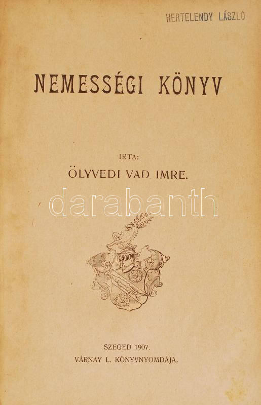 Vad Imre, ölyvedi: Nemességi könyv. Első kiadás!